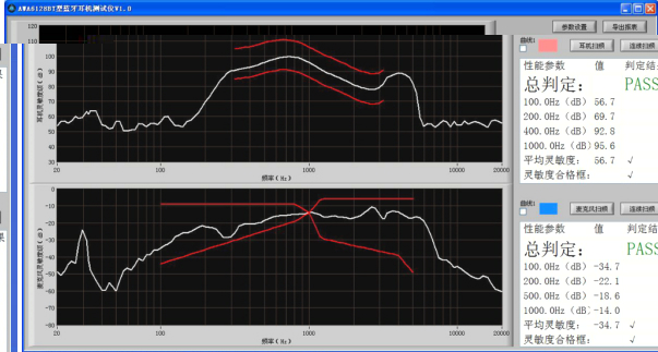 (2)耳機測試頻響范圍:100 Hz~ 10 kHz ;動態(tài)范圍:35 dB~ 135 dB