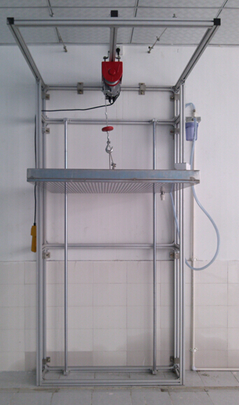 試驗室分別由測試臺、儲水槽(客戶自備)、控制箱、轉(zhuǎn)盤、和噴淋系統(tǒng)組成。