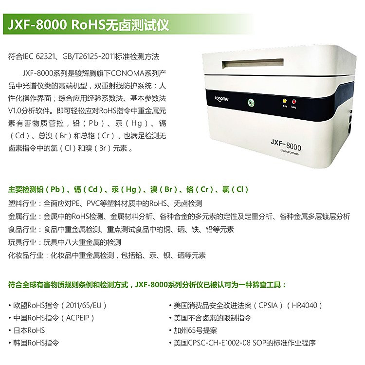 XRF熒光光譜儀JXF-8000 RoHS 無鹵測試儀重金屬元素檢測儀